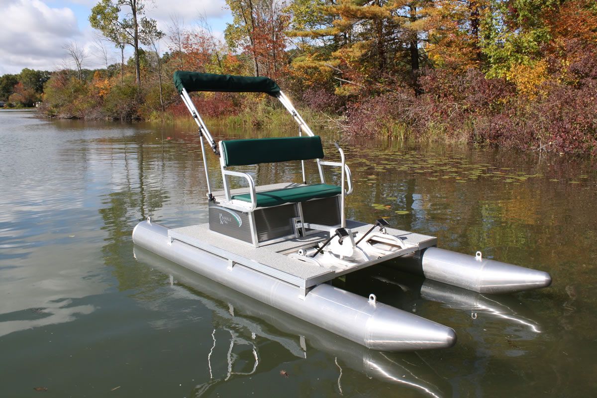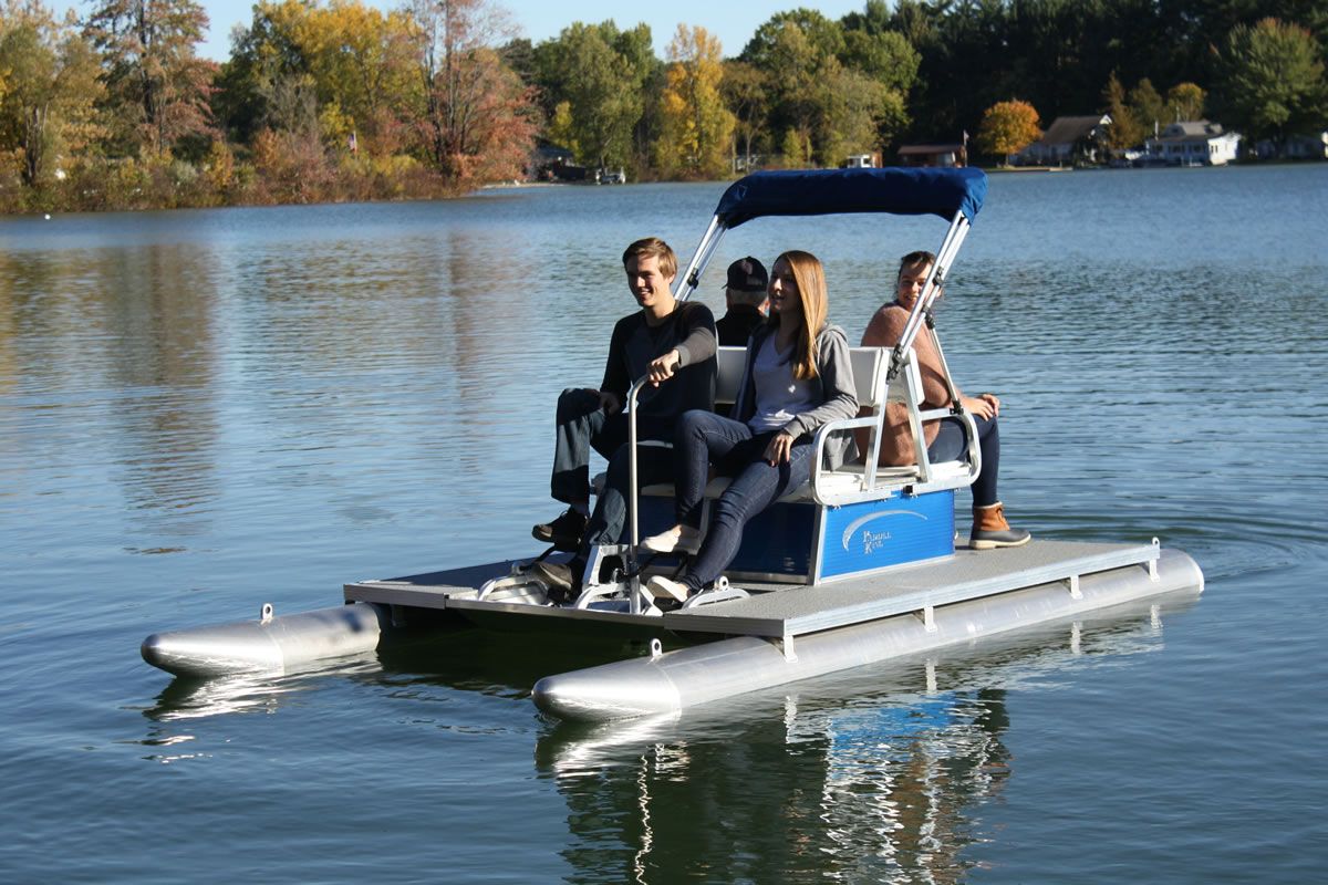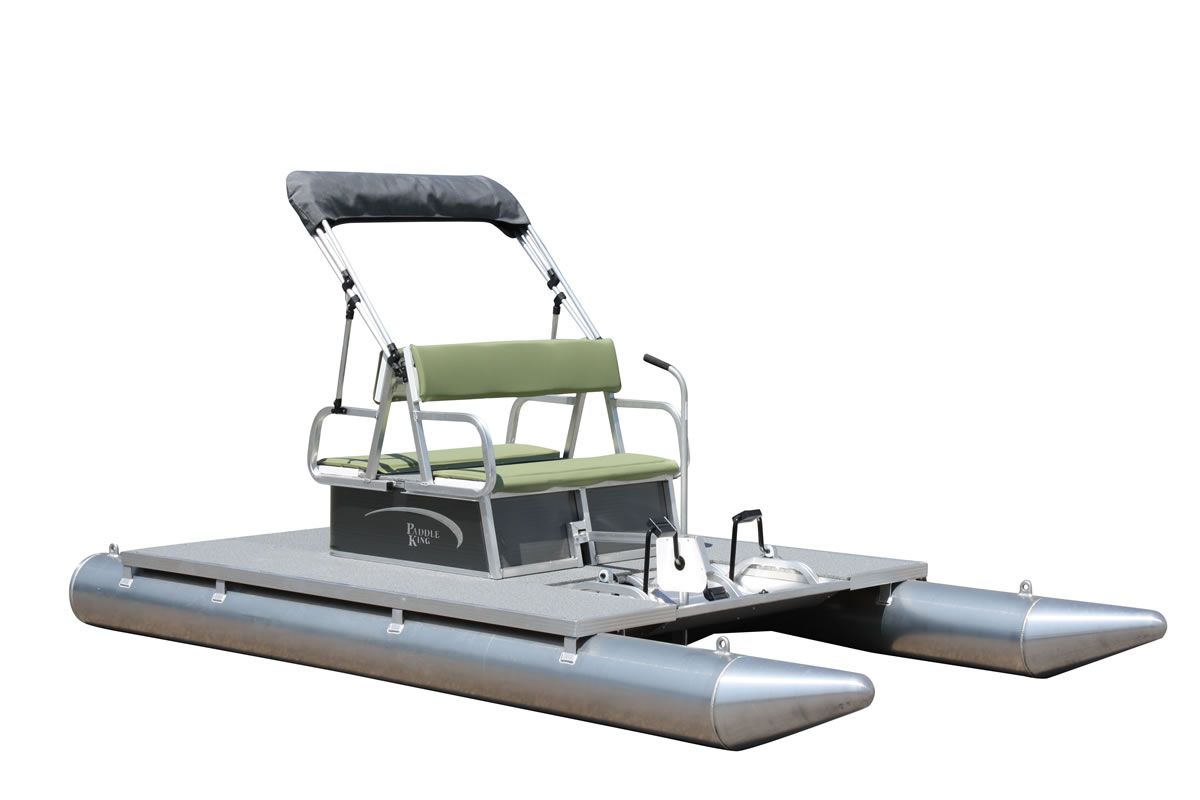 The PK4400 is our largest paddle boat, seating up to 4 persons. It offers back-to-back seating and lots of deck space. With four low-profile tubes, it is one of the most stable paddle boats on the market. The PK4400 comes standard with Sunbrella® canopy and two sets of seat cushions. LOA is 12.8", total weight capacity is 750 lbs.